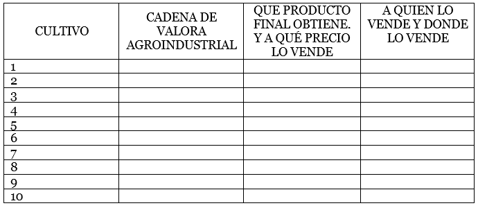 Con base a sus conocimientos de información recogida de los agricultores, tomando en consideración los cultivos detallados en la Parte 1, cuales cultivos son transformados generando cadenas de valor agroindustrial, aunque sean estas cadenas muy insipientes. Haga la comparación con referencia a los cultivos de la Parte 1.